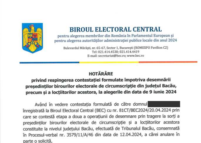 Un cetățean din Bacău a depus o sesizare la Biroul Electoral Central, atrăgând atenția asupra unor nereguli în desemnarea președinților birourilor electorale din județ.