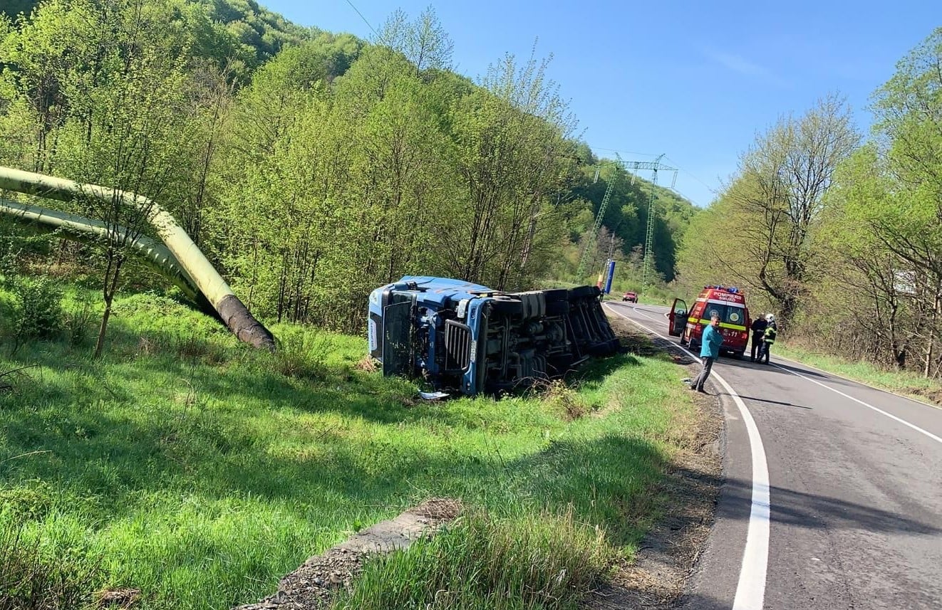 Din primele informații, un camion încărcat cu cherestea s-a răsturnat pe DN11, comuna Oituz, sat Poiana Sărată.