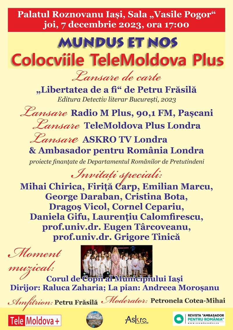 Evenimentul va fi transmis și pe Radio M Plus Pașcani, pe TeleMoldova Plus Londra și pe ASKRO Tv Londra & Revista „Ambasador pentru România” Londra – proiecte finanțate de Departamentul Românilor de Pretutindeni.