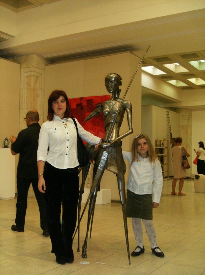 Buhuseanul Razvan Botezatu este un artist cu vocatie, nu dintre cei care se apropie de arta ca de o slujba, ca de un job al supravietuirii. Este absolvent al facultatii de matematica. Inca din timpul acestor studii, chemarea catre arta l-a atras in atelier. A fost/este unul dintre putinii nostri artistii preocupati de realizarea in regim manufacturier a armurilor medievale. Putini artisti de acest gen exista chiar si in Europa. A fost recunoscut in acest club select. Apoi s-a inscris la cursurile Universitatii de Arte Decorative si Design din Bucuresti, unde, cu profesori renumiti, a si absolvit, cu magna cum laude, in acest an. A fost cautat de organizatorii unor expozitii importante. Recent, la Palatul Parlamentului, sala Brâncusi, a expus, alaturi de unii dintre cei mai cunoscuti artisti plastici din România, in cadrul expozitiei „Comunicare prin simbol”, gestionata de Uniunea Artistilor Plastici. Expozitia, cotata ca fiind de prim rang, deschisa pâna pe 12 septembrie, reuneste lucrari de o mare diversitate tematica, impresioneaza prin tehnicile de lucru surprinzatoare, prin calitate. Specialistii le-au stabilit si standarde… pecuniare: de la 2.000, la 20.000 de euro. De la vernisajul expozitiei n-au lipsit sotia si fiica artistului, Roxana si Ema, dar nici tatal, nimeni altul decât prof. Petru Botezatu, liderul asociatiei culturale „Renasterea” Buhusi. Lucrarea expusa, Hylonome, este una dintre vedetele expozitiei. Hylonome, femeia-centaur in mitologia greaca, a participat la lupta impotriva lui Lapiths, alaturi de sotul ei, centaurul Cyllarus, pe care l-a iubit foarte mult. Acesta a murit in acea lupta iar Hylonome s-a sinucis, aruncându-se in sulita lui. Ovidiu, in „Metamorfoze”, aminteste despre acest sacrificiu al dragostei si fidelitatii. Indragostit de mitologie, Razvan Botezatu a picurat in creatia sa metafizica, suflet, sublim, gratie, suferinta si sacrificiu. In viziunea sa, Hylonome are o tristete a jertfei, dar si o bucurie tacuta a atasamentului si de dincolo de viata. „Centaurita” Hylonome intra inca o data in mitologie, prin creatia de metal… umanizat a lui Razvan Botezatu, cu acest chip al sacrificiului pe care scrie izbânda. Lucrarea a primit, prin cronicile de specialitate, aplauzele criticilor. Nu intâmplator, artistul a fost invitat sa expuna si in expozitia care va fi vernisata la cunoscutele galerii bucurestene „Orizont”, pe bulevardul Victoriei, in ziua de 22 octombrie. Publicul o va putea vizita timp de o luna. Este cea de a zecea expozitie importanta in care va expune. Ce va urma? „O viata artistica in Bucuresti, spune artistul. Daca nu esti acolo, in epicentrul vâltorilor experimentale si expozitionale, daca nu te mentii in circuit la acest nivel, risti sa ramâi un anonim important; atât.”