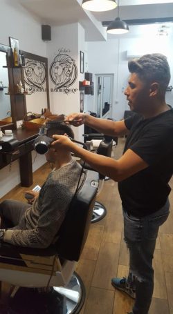 Trecând la alt capitol important, cel al experienței profesionale, am aflat că Ionuț practică această meserie, de frizer, de 20 de ani, Radu are o experiență de patru ani, iar Alex este cel mai nou în branșă lucrând în spatele scaunului de doi ani. Toți au urmat diferite cursuri și au diplome de absolvire, deși John când i-a angajat pe Radu și Alex nu le-a cerut nici o hârtie. „Prima dată l-am avut pe Alex angajat, apoi am completat echipa cu Radu. I-am angajat fără să le cer hârtii pentru că am văzut ce pot să facă. Am avut încredere în ei și mi-au confirmat așteptările. Mulți clienți pe care i-au avut înainte au venit după ei aici”, a spus Ionuț Mitrofan. John, cu o experiență bogată, dobândită chiar și în străinătate (a lucrat ca frizer in Italia și Anglia-n.r.) vorbește în continuare de mentalitate. O problemă la care trebuie lucrat atât în rândul clienților dar și al frizerilor.