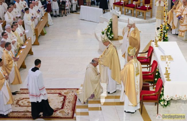 “Inima celebrării” este considerată impunerea mâinilor şi rugăciunea de hirotonire. Prin semnul impunerii mâinilor din partea celor trei episcopi consacratori şi apoi a tuturor celorlalţi episcopi, Duhul Sfânt s-a revărsat asupra celui ales. Rugăciunea de hirotonire a fost rostită în limba latină pentru a arăta comuniunea cu întreaga Biserică Universală.