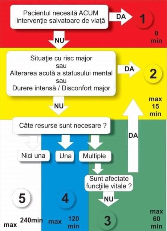 Noul document prevede un timp maxim de preluare în zona de tratament de 60 de minute pentru cod verde, 120 de minute pentru cod albastru și de 240 de minute pentru cod alb. De asemenea, se cere ca reevaluarea pacientului „să se facă în cazul în care timpul de preluare în zona de tratament este mai mare de 15 minute sau apar modificări semnificative în starea pacientului, ceea ce presupune reluarea integrală a algoritmului de triaj”.