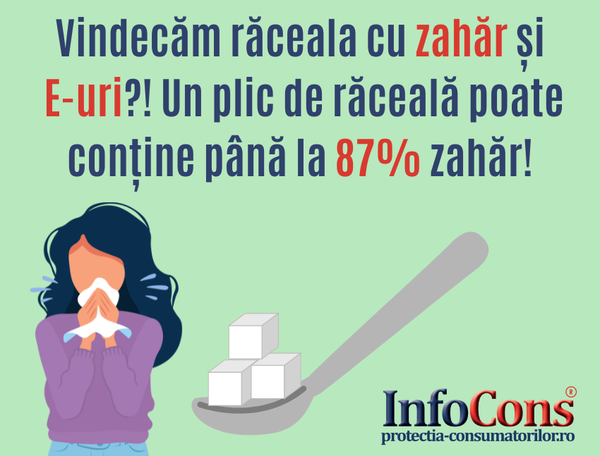 Un plic împotriva răcelii poate conține pâna la 87% zahăr, media fiind 36%, în condițiile în care unele etichete nu furnizează informații cu privire la cantitatea de zahăr conținută de produs.