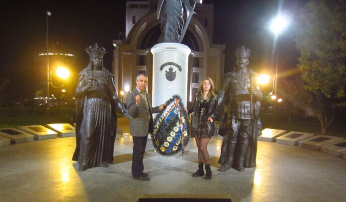 Pentru că centenarul încoronării regilor României reîntregite a trecut nemarcat, în Bacău, profesorul Ioan Dănilă și studenta Irina-Elena Diţu au depus, azi-noapte, o coroană la monumentul „România biruitoare” din Parcul 1 Decembrie 1918, mai cunsocut sub numele de „Parcul Catedralei”.