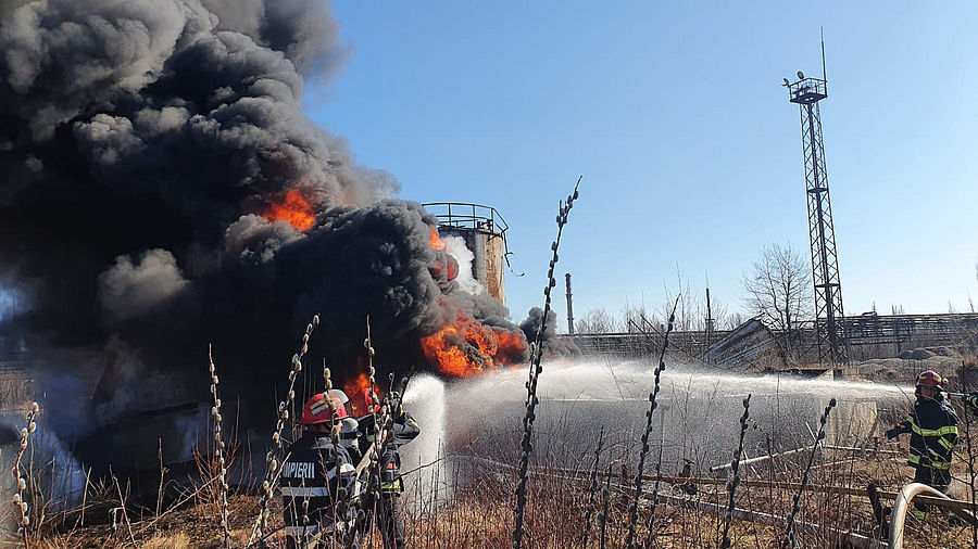 Un rezervor dezafectat de la Carom a luat foc, astăzi, în cartierul TCR din Onești.