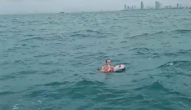 Bărbatul a fost descoperit de căpitanul unei bărci turistice care trecea prin zonă, în largul coastei Pattaya, întins pe spate în apă, complet epuizat. Acesta avea răni pe corp, probabil cauzate de șederea prelungită în apă. Din fericire, curentul nu era prea puternic și bărbatul nu s-a îndepărtat prea mult de țărm, evitând astfel pericolul de a fi lovit de lamele altor nave.