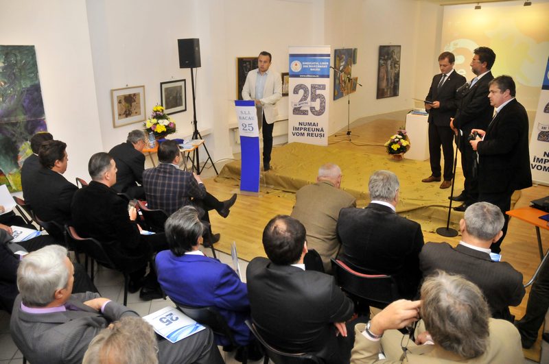 Au fost prezenti, de asemenea, lideri ai SLI din judetele invecinate, directori de institutii si reprezentanti ai altor sindicate din invatamânt. In debut, George Adrian Purcaru, actualul lider al SLI Bacau, le-a urat bun venit tuturor si le-a vorbit despre inceputurile miscarii sindicale, despre prima revista postdecembrista, “Catedra”, care a aparut in Bacau, despre prima echipa, cea care a infiintat SLI Bacau in 1990, si despre seniorii miscarii sindicale.