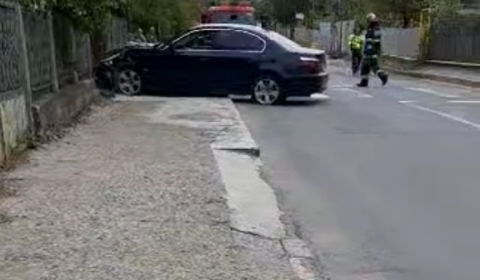 Mașina implicata în accident a lovit, apoi, o conductă de gaze iar șoferul a fugit.