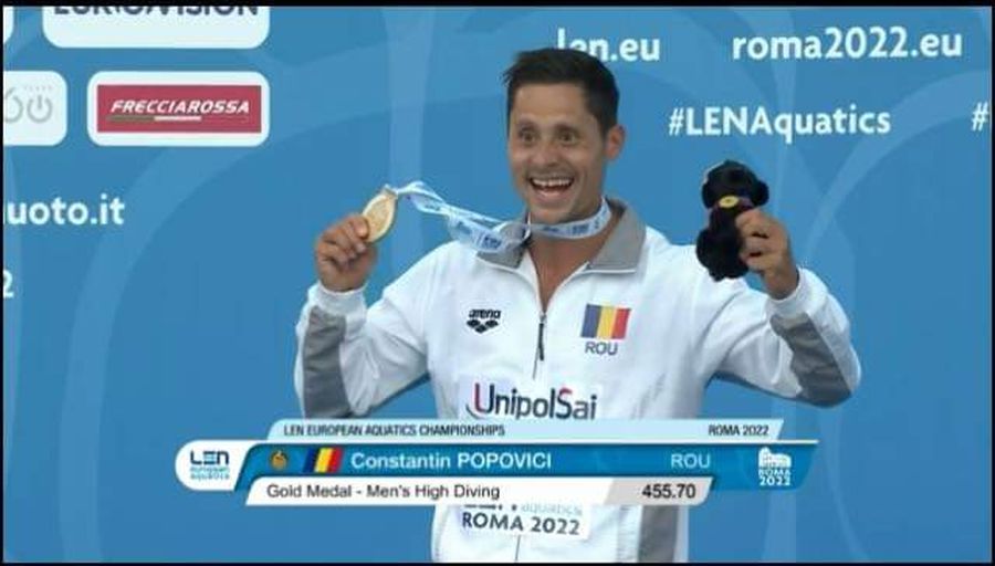 Constantin Popovici, student la Universitatea „Vasile Alecsandri” din Bacău, Facultatea de Științe ale Mișcării, Sportului și Sănătății, în anul al doilea, la programul de studii universitare de master Performanță Sportivă, este noul campion european la High Diving (sărituri de la mare înălțime), impunându-se cu un total de 455,70 puncte, acumulate după cele 4 runde ale probei din cadrul Campionatului European de Natație de la Roma desfășurată în perioada 18-20.08.2022.