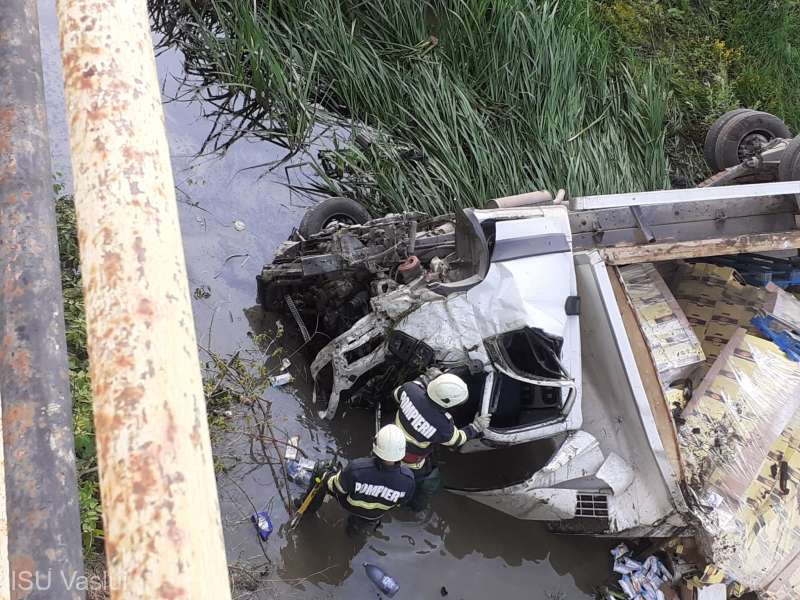 Un TIR s-a răsturnat, miercuri seara, de pe un pod într-un pârâu din localitatea Siliştea, în apropiere de Negreşti, în urma incidentului doi bărbaţi fiind răniţi şi unul transportat cu multiple traumatisme la Unitatea de Primiri Urgenţe a Spitalului Judeţean Vaslui.