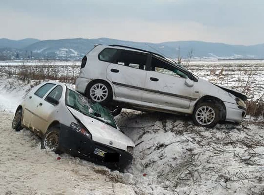 Autoturismele au ieșit în decor, unul peste celălalt.
