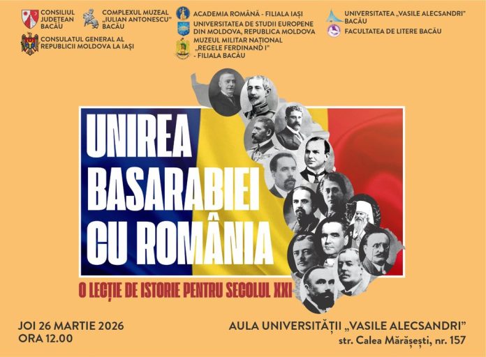 Complexul Muzeal „Iulian Antonescu” Bacău, alături de Consulatul General al Republicii Moldova la Iași, Universitatea „Vasile Alecsandri” Bacău, Universitatea „Al. I. Cuza” Iași, Universitatea de Studii Europene din Republica Moldova și Muzeul Militar Național „Regele Ferdinand I” – filiala Bacău, organizează în data de 26 martie 2026 o serie de manifestări cultural-educative dedicate aniversării Unirii Basarabiei cu România, care își propun să evidențieze semnificațiile actului de la 27 martie 1918 și să recompună contextul istoric, politic, militar și social care l-au făcut posibil.