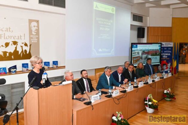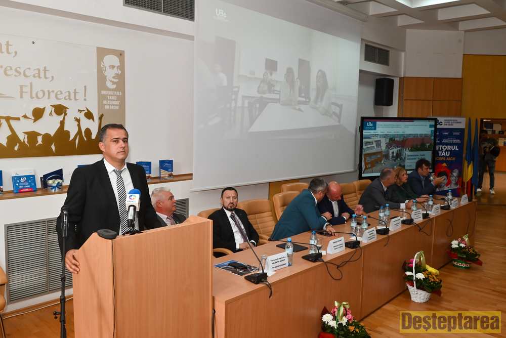 „Cu bucurie și entuziasm, ne întâlnim astăzi pentru a marca începutul unui nou an universitar plin de oportunități și provocări. Să abordăm acest an cu pasiune și dedicare, să fim deschiși la idei noi și la colaborare, și să ne străduim să atingem potențialul nostru maxim. Universitatea este un loc unde visurile devin realitate și unde se formează liderii de mâine. Să fim inspirați și să inspirăm în egală măsură. Cu ocazia deschiderii acestui nou an universitar, este o mare plăcere să vă anunț că ne bucurăm de o serie de săli de clasă complet modernizate și echipate pentru a vă sprijini în parcursul vostru academic. Sălile noastre moderne au fost concepute cu atenție pentru a oferi un mediu optim de învățare. Acestea sunt dotate cu tehnologie de ultimă generație, astfel încât să puteți beneficia de resurse și instrumente inovatoare pentru studiul vostru. Am investit în infrastructură pentru a vă ajuta să vă dezvoltați abilitățile și să vă atingeți obiectivele academice. Aceste săli moderne sunt mai mult decât doar spații de predare; sunt locuri de inspirație și colaborare. Vă încurajez să le utilizați în întregime, să discutați, să dezbateți și să creați împreună. Cu ajutorul acestor facilități de vârf, suntem convinși că veți avea o experiență academică îmbunătățită și că la absolvire veți fi pregătiți să faceți față provocărilor lumii moderne. Să ne bucurăm de aceste resurse în noul an universitar și să le considerăm un instrument valoros în călătoria noastră academică. Haideți să facem acest an, împreună, cel mai bun posibil”, a transmis Conf. univ. Dr. Andrei Paraschivescu, Rectorul Universității „George Bacovia” din Bacău.