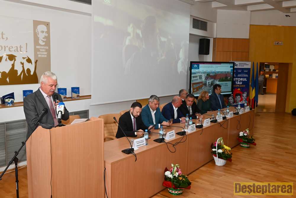 „Începem cu bucurie noul an universitar pentru că avem cei mai mulți boboci din ultimii 4 ani, peste 2500 de studenți în anul I. A fost o admitere foarte bună, atât în privința studenților români, cât și studenții străini veniți din 21 de țări să studieze la noi, ceea ce ne dă încredere că facem un învățământ de calitate. Ne călăuzim activitatea pe mai multe principii: primul Universitatea aproape de tine, de studenți, de comunitate, de mediul socio-economic și administrativ. De asemenea, dorim să creștem digitalizarea Universității, internaționalizarea, creșterea performanței în cercetare, proiecte europene care susțin sustenabilitatea Universității astfel încât să devenim un pol de atracție în regiune”, a precizat Prof. univ. dr. ing. habil. Carol Schnakovszky, Rectorul Universității „Vasile Alecsandri” din Bacău.