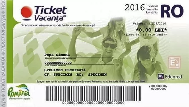 Valoarea tichetului de vacanță rămâne și în acest an de 1.450 de lei. Tichetul este valabil timp de un an de la data emiterii.