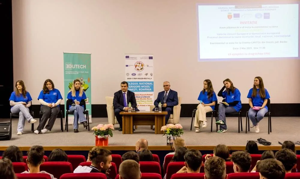 La Colegiul Național „Grigore Moisil” din Onești, Școală-Ambasador a Parlamentului European-EPAS, a avut loc o dezbatere pe tema „Valorile Uniunii Europene (UE) și democrația parlamentară europeană – Procesul decizional la toate nivelurile: local, național și internațional”. Evenimentul s-a desfășurat în parteneriat cu Europe Direct Bacău, cu Inspectoratul Școlar Județean, cu Primăria Municipiului Onești și Biblioteca Municipală „Radu Rosetti”.