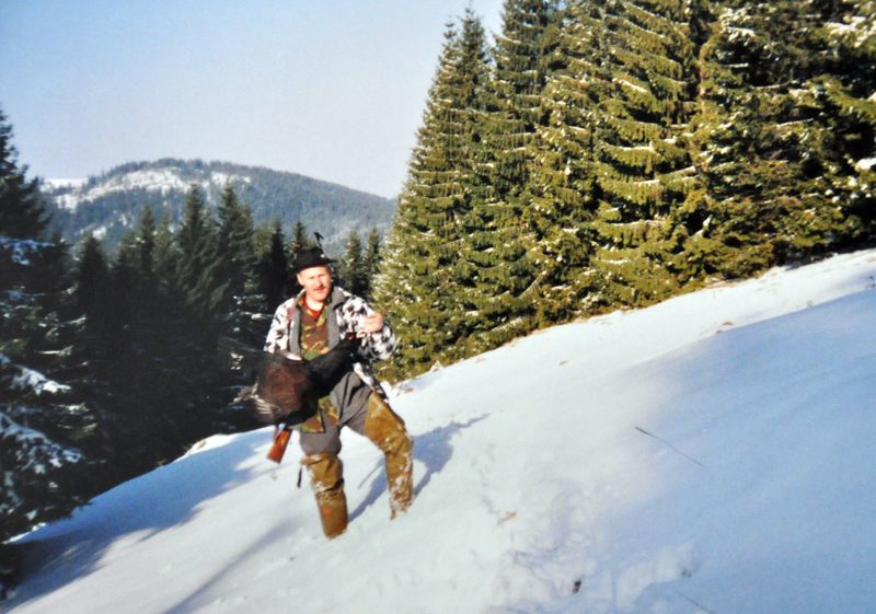 Mustata se imbraca cu gheata de la respiratie. Eu traiam insa momentul. Dupa trei-patru kilometri, privind in zare, am vazut cum din zapada ieseau aburi. Ne-am apropiat incet, incet, destul de mult. Erau intr-o mica vale.Turma statea culcata. Dupa care am facut observatie sa vedem ce mascul sa dam jos si, cu acordul insotitorului, l-am ales. Aveam o carabina Browning Maral cu luneta Zeiss Z5. Am tras un singur foc. Turma a luat-o la goana. Dupa aceea am mers la locul faptei. Am primit crenguta oferita de organizator. S-a apelat cu telefonul. A venit ATV-ul si ne-a luat cu tot cu prada. Dar de atâta bucurie nici frigul nu-l mai simteam. Adrenalina. Când am ajuns la cabana spuneai ca sunt batut cu urzica. Asa se unflasera mâinile si picioarele din cauza gerului!”