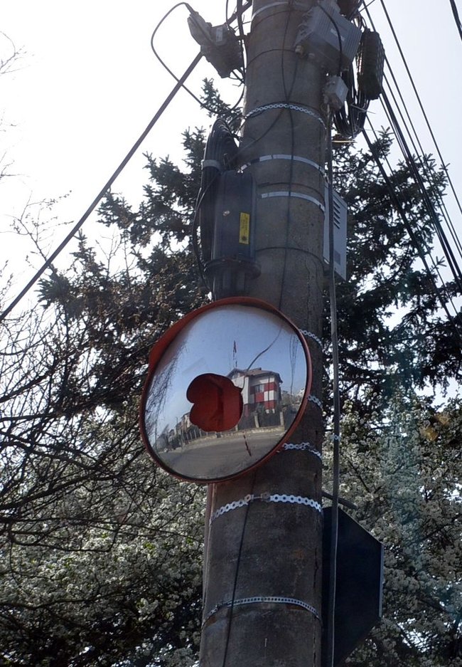 In astfel de intersectii exista un risc mare de accidente, iar ca sa se evite asa ceva, s-au amplasat la colturi de strada acele oglinzi rutiere care suplinesc lipsa de vizibilitate si largesc unghiul vizual al soferilor. Si prin Bacau au existat destule astfel de oglinzi.