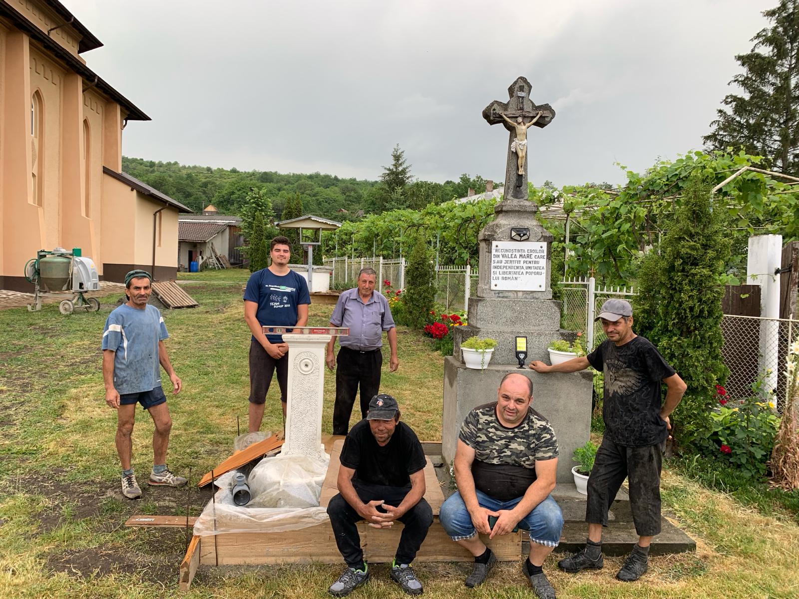 Mai mult decât atât, Vasile Tăbăcaru este un om foarte implicat în comunitate, pentru care a făcut foarte multe lucruri. „Odată, veneam de la nuntă și treceam prin fața cimitirului… Pentru mine cimitirul e un loc în care găsesc liniște și pot să-mi pun gândurile în ordine, mai ales când mă gândesc la o afacere. Intrând în cimitir, am văzut foarte multă mizerie. Coșurile de gunoi pline cu de toate… A doua zi dimineață am dat telefon la părinte și i-am zis că vreau să fac curățenie acolo. M-am dus cu o lopată și un hârleț, și cu încă un băiat care lucrează la mine, și am făcut ordine și curățenie. Am turnat și rampe de gunoi și acum totul se adună selectiv”, ne-a povestit Vasile Tăbăcaru. Și de atunci cimitirul este foarte curat, lucru care nu a fost trecut cu vederea de localnici. Iar lucrurile nu s-au oprit aici. Din toate deșeurile strânse, o parte au fost vândute la firme care se ocupă cu așa ceva. Banii obținuți au fost folosiți la construcția porților cimitirului, o lucrare pe care o mai poți întâlni, după cum spune Vasile Tăbăcaru, numai la rezidențele din străinătate. Și lucrurile au continuat. Pentru că nu sunt bani în comună, Vasile Tăbăcaru a strâns în jurul lui câțiva oameni și au dat o mână de ajutor la muncile din curtea bisericii. Au pus piatră, au pus cișmele… Iar oamenii au fost mulțumiți și impresionați și chiar au dat o mână de ajutor. Practic, a fost vorba de puterea exemplului.