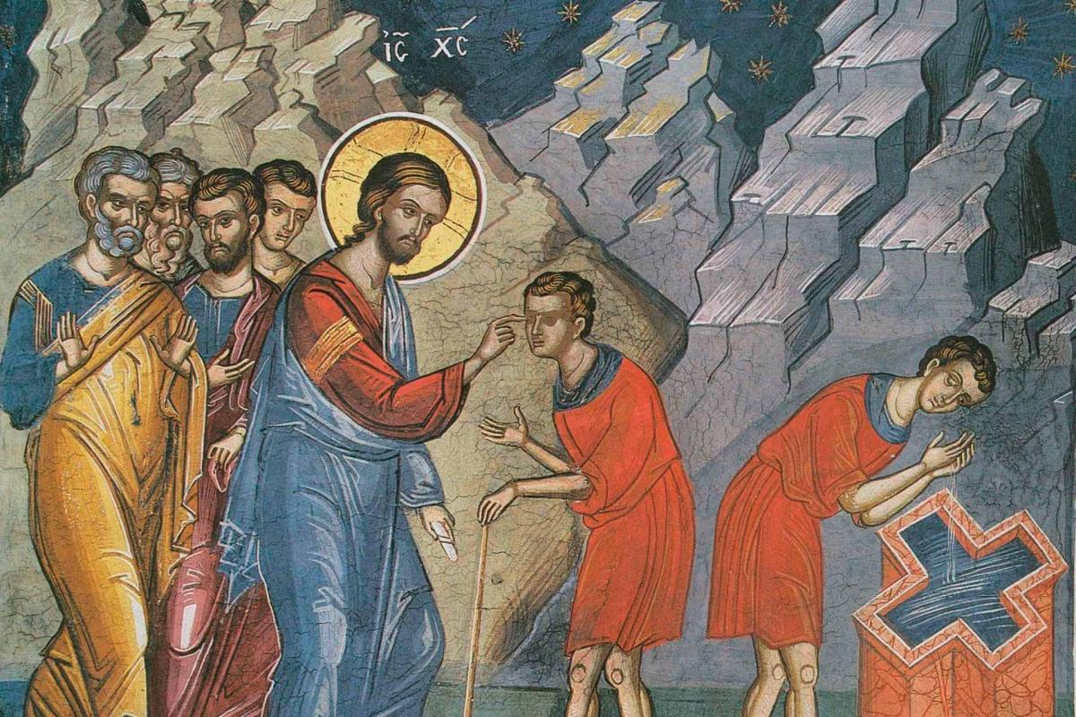 În cealaltă pericopă, a Evanghelia zilei (Ioan 9), un orb din naștere devine pricină de întrebare pentru apostoli: ”Învățătorule, cine a păcătuit: acesta sau părinții lui, de s-a născut orb?”. O curiozitate nelalocul ei, ce trădează o neînțelegere a libertății harului, care acordă sufletelor noastre roluri fundamentale în mântuirea celorlalți. Nu toate bolile sunt urmarea păcatelor ori dezechilibrelor măsurate uman. Pe Domnul Îl tulbură întrebarea și reacționează cu o minune. Printr-un act, care-I reconfirmă statutul de Creator, pecetluit cu scuipat, cam cât ar valora curiozitatea ucenicilor atinși de cinismul indiferenței celor din jur, Fiul face tină, amintind astfel că suntem pământ – oricât de tari ne-am putea crede, unge ochii orbului și-l trimite la scăldătoarea Siloamului, spre a se spăla. Formalitatea curățitoare aduce cu sine și o fericită constatare. Cerșetorul își umple acum viața de lumină și-și strigă bucuria în gură mare. Însă… și minunea aceasta dezbină. Cel puțin aparent. Cârcotașii încep propriile analize și bârfesc miracolul. Dar și pe amărâtul scos la lumină. Omul este anchetat asupra Celui ce l-a vindecat și dat afară din templu. Peste cel care se revarsă miracolul vederii nu se revarsă și dragostea semenilor, bucuria lor de a-l vedea înviat.