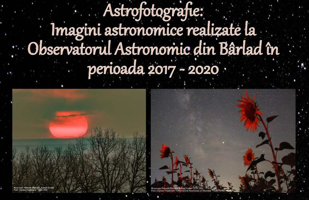 Complexul Muzeal de Științele Naturii „Ion Borcea” Bacău invită băcăuanii, luni, 15 ianuarie, ora 12.00, cu ocazia Zile Naţionale a Culturii, la sediul Observatorului Astronomic, pentru a participa la vernisarea expoziției temporare „ASTROFOTOGRAFIE: Imagini astronomice realizate la Observatorul Astronomic din Bârlad în perioada 2017 – 2020”, de cunoscutul specialist bârlădean Ciprian Vântdevară.