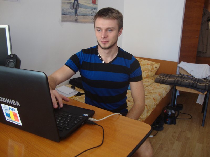 Din aceasta postura, trebuie sa am grija ca totul sa fie in ordine si sa fie liniste”, ne-a mai spus Alex. Tot in camera 214 locuieste si Stefan Tataru, din Scorteni, student in anul I la Mecatronica. Stefan e un tip mai prietenos din toate punctele de vedere. „Ma inteleg bine cu toata lumea, ajut cu ce pot pe toata lumea, chiar si pe studentii din Republica Moldova, din Caminul 1. Se spune ca ei sunt mai in lumea lor. Dar nu e chiar asa…”, a spus tânarul din Scorteni. Un veteran al Caminului 2 este Daniel Roata din Vatra Dornei, student in anul III, la Sport.