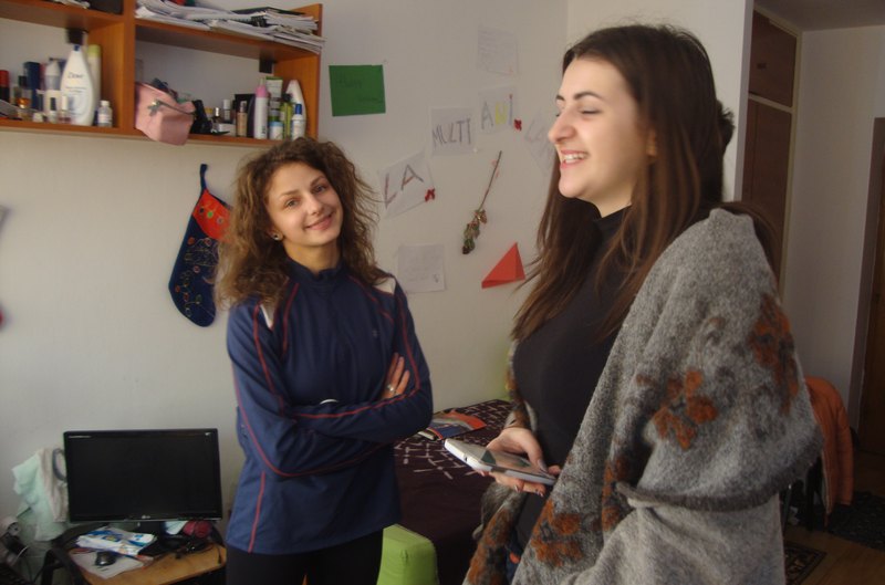 Inarmati cu un aparat de fotografiat si un reportofon, la inceputul saptamânii, am patruns in lumea studentilor pentru a surprinde atmosfera din aceasta perioada. Si unde puteam face cel mai bine acest lucru, decât in Caminul Studentesc? Cum in dotarea Universitatii „Vasile Alecsandri” din Bacau sunt patru astfel de unitati de cazare, am ales Caminul 2, mixt, cu peste 200 de studenti. Fetele locuiesc la etajul 1, iar baietii la etajele 2 si 3. Mai intrat in camera 121, unde locuiesc patru studente, toate in anul I: Larisa si Andreea sunt la Kineto, Monica la Sport si inca o Andreea, la Inginerie. Toate invatau.