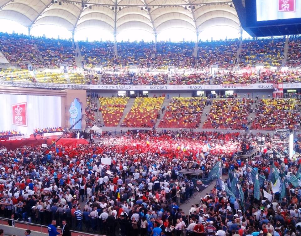 Președintele executiv al PSD, Liviu Dragnea, a fost primul care a susținut un discurs pe scena uriașă amplasată în centrul arenei. El s-a declarat încrezător în șansele lui Victor Ponta de a deveni președintele țării, afirmând că, de data aceasta, vor juca acasă și nu în deplasare ca la referendum.