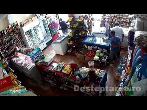 Alaturi de el sta un tânar imbracat in tricou albastru, care lasa impresia ca vrea si el sa cumpere ceva, dar de fapt ei erau impreuna si scopul era sa o tina de vorba pentru a putea da lovitura. La un moment dat, tânarul profita de faptul ca gestionara este aplecata peste lada si in doar câteva secunde se duce in spatele tejghelei si sustrage toate incasarile, respectiv aproape 5.000 de lei, dupa care se intoarce la rând.