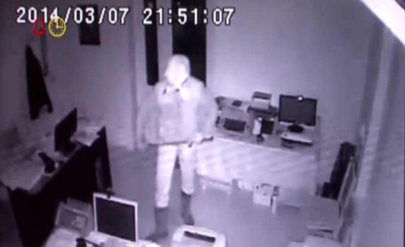 Pe cand se chinuia sa scoata seiful, fata de perna i-a cazut de pe cap iar el a fost inregistrat de camera video de supraveghere.