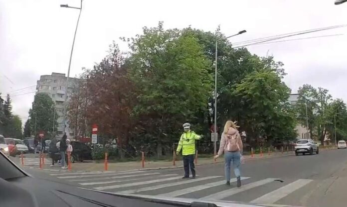 Conform informațiilor obținute în urma verificărilor, femeia a continuat să traverseze în ciuda semnelor clare ale polițistului, care dirija traficul rutier.