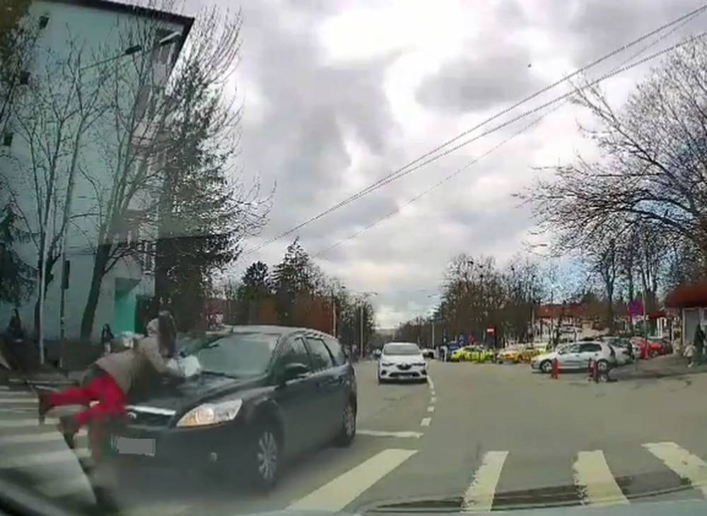 Incidentul, în care un pieton a fost lovit de un autoturism, a fost înregistrat de o cameră video dintr-o mașină și publicat pe grupul FB Radar/Politie/Evenimente Rutiere Bacau.
