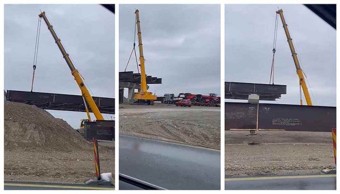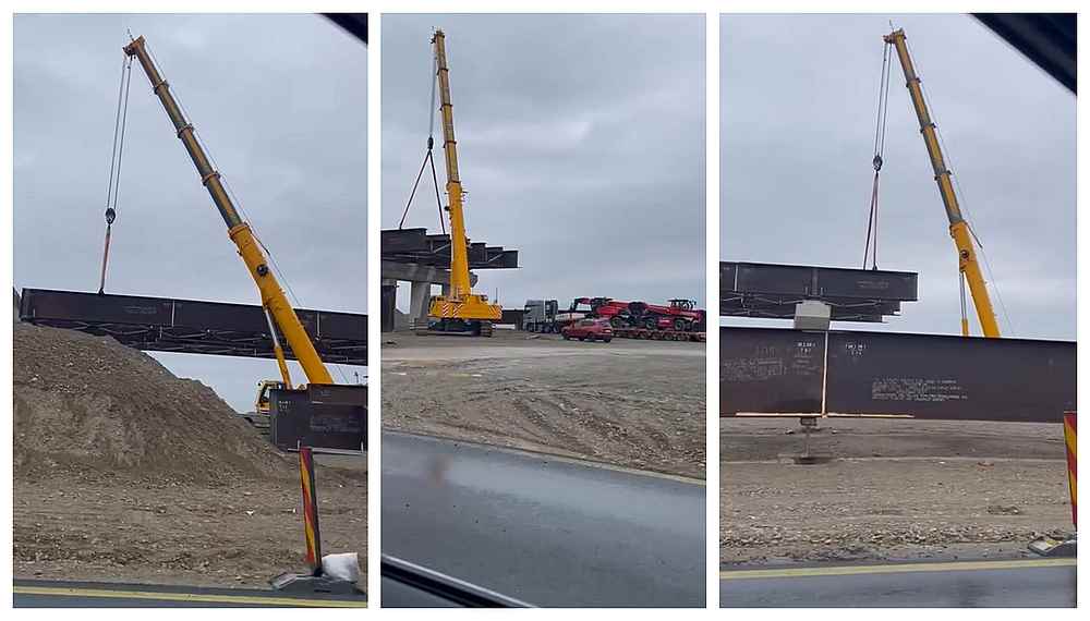 VIDEO: Progrese majore pe Autostrada Moldovei A7: a început montarea tablierului metalic al pasajului din zona Garoafa