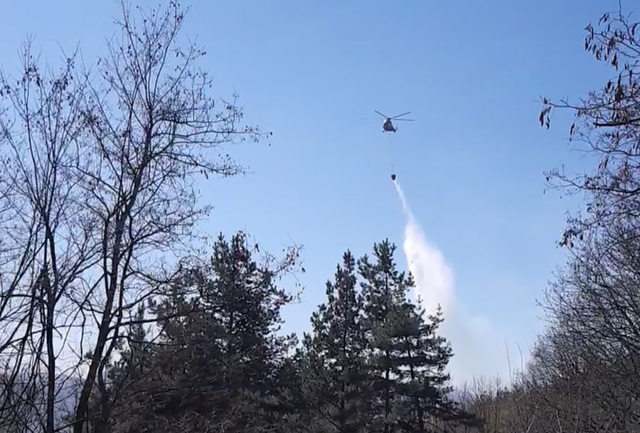 La fața locului a fost adus un elicopter prevăzut cu un dispozitiv de stins incendii.
