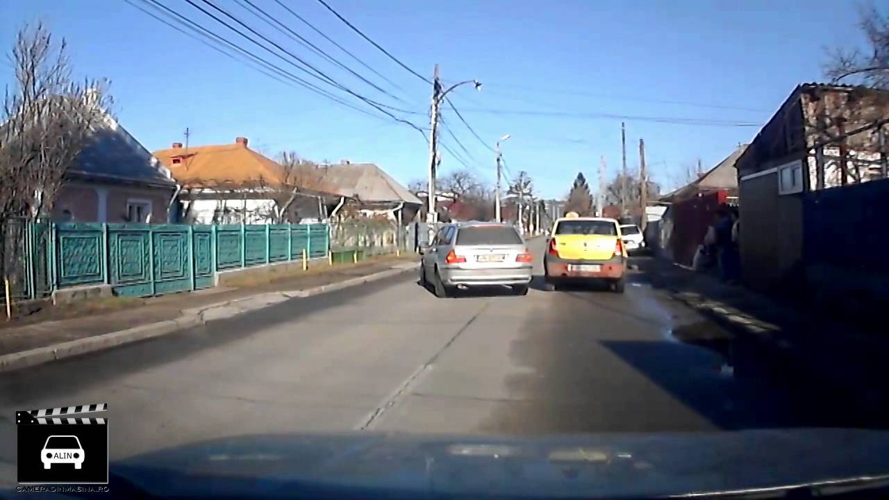 Inregistrarea video a fost realizata cu o camera de masina si surprinde momentul in care era sa se produca accidentul dar si reactia soferului din autoturismul care era sa izbeasca taxiul.