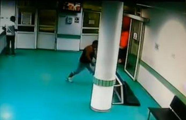 Agresorul a fost imobilizat de agentii de paza si internat la sectia de psihiatrie.