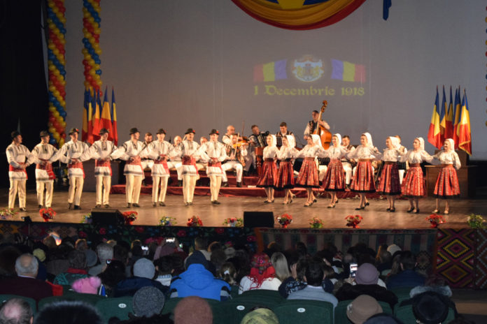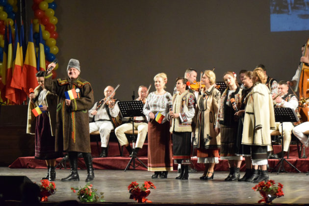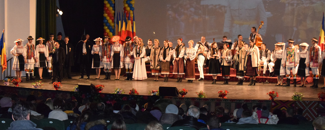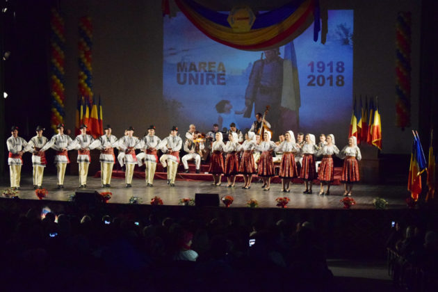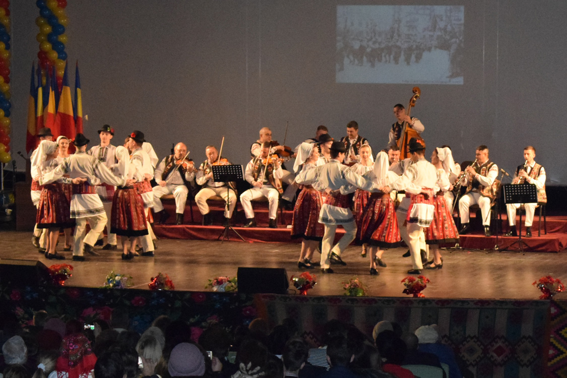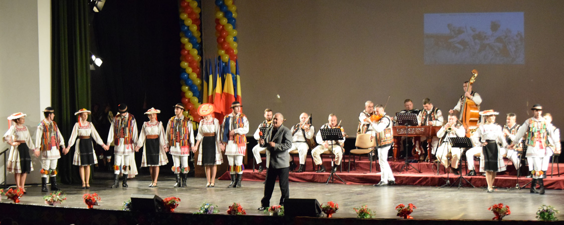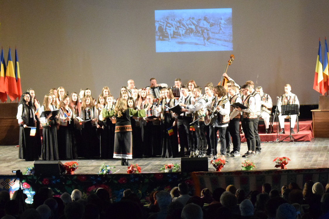 Şi au urmat dansurile populare, suita de pe Valea Oituzului, acolo unde armata română s-a acoperit de glorie, „Sârba ofiţerilor”, dans care, alături de „Căluşul” arată măsura talentului şi măiestriei dansatorilor din Ansamblul „Busuiocul”. O surpriză a organizatorilor a fost invitarea pe scenă a Grupului Folcloric „Ştefan-Vodă” din Basarabia. Şase solişti, bărbaţi, cu tunete în voci, cu cobză, nai, dubă, fluer, contrabas, îmbrăcaţi cu sumane din vechiul port al modovenilor lui Ştefan, au dat glas unor cântece de mare sensibilitate, de dor de ţară, de dor de România, unul dintre refrene ridicând sala în picioare” „Şi-am venit să te salut, fratele meu de peste Prut”, invitându-ne cât de curând „să dăm jos hotarul de peste Prut”. Frumoşi şi puternici bărbaţi, curajoşi, talentaţi şi cu mare dragoste de România, cântându-i, cu toată sala „Mulţi ani trăiască!”. Emoţionant, dureros de adevărate verurile cântecelor celor de la ansamblul „Ştefan-Vodă”. „Transilvanie frumoasă” au cântat şi fetele din Grupul „Flori de câmp”, pregătit de prof. Gheorghe Gozar, cu aplauze fiind răsplătiţi şi membrii Grupului „Resurrectio” din Moineşti, îndrumat de Gabriela Bia, Georgiana Tănase, Georgiana Păduraru, Loredana Streche – voce şi nai, Florin Blaj, cu „Tu Ardeal, tu Ardeal” au încununat un spectacol de zile mari, pentru O ZI MARE, O Zi SFÂNTĂ – Ziua când s-au împlinit 100 de ani de la Marea Unire, pe care au făcut-o înaintaşii noştri cu preţul sângelui.