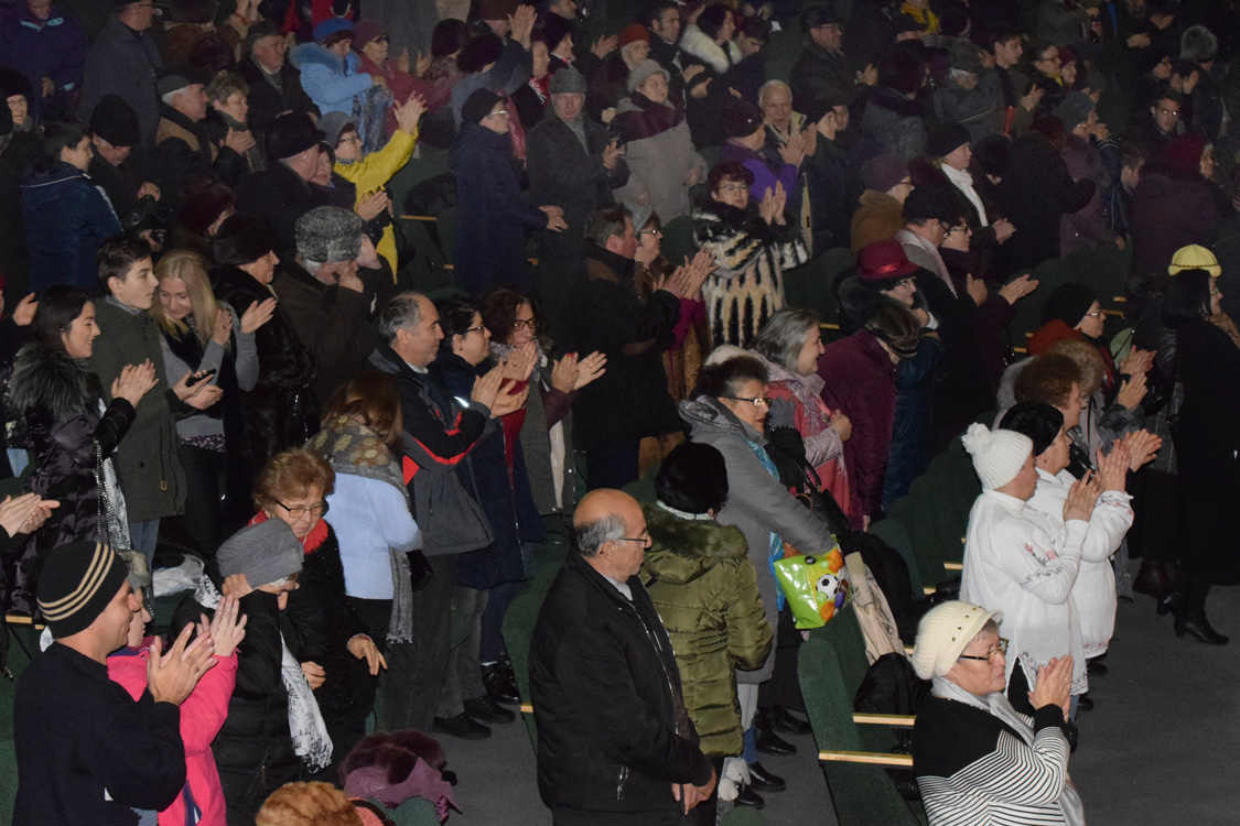 Cu tot frigul pătrunzător de afară, câteva sute de băcăuani au venit la Teatrul de Vară „Radu Beligan” pentru a fi împreună, sâmbătă, 1 Decembrie, de la ora 14.00, cu soliştii, dansatorii şi instrumentiştii Ansamblului Folcloric Profesionist „Busuiocul”, dar şi cu actori ai Teatrului Municipal „Bacovia”, cu invitaţii din Chişinău şi din alte zone etno-folclorice ale României, la spectacolul omagial dedicat Zilei Naţionale a României şi Centenarului Marii Uniri.