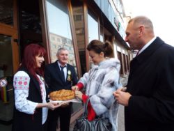 La reuniunea pentru inaugurarea sediul DL din Bacău Viorel Cataramă a venit cu soția sa și a fost primit cu pâine și sare. A tăiat panglica inaugurală, apoi a asistat la un scurt program artistic prezentat de un grup de elevi.