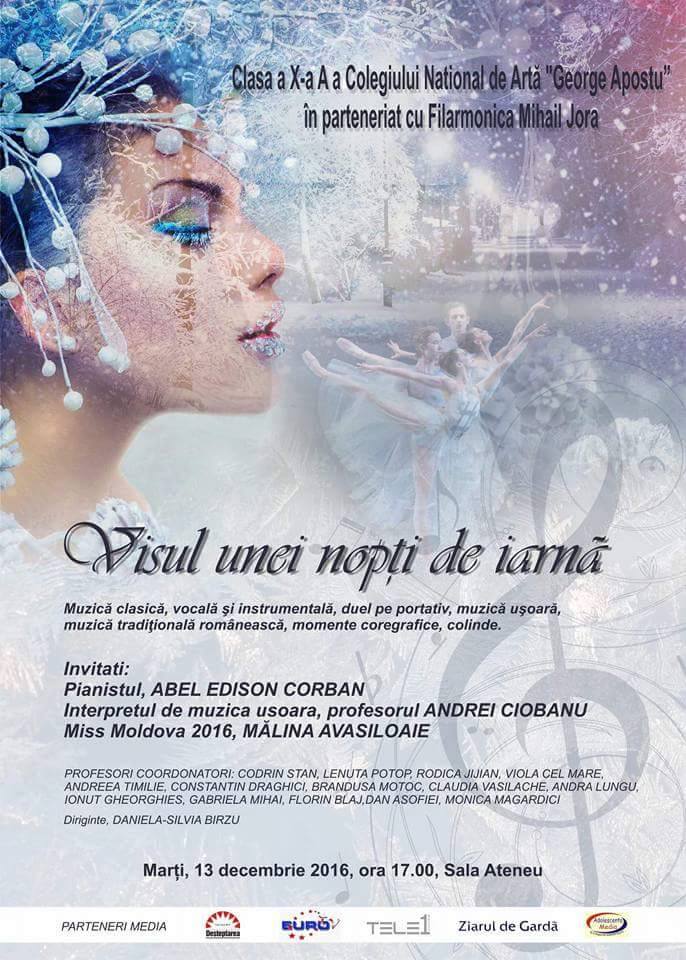 Invitati: pianistul Abel Edison Corban, interpretul de muzica usoara prof. Andrei Ciobanu si Miss Moldova 2016, Malina Avasiloaie.