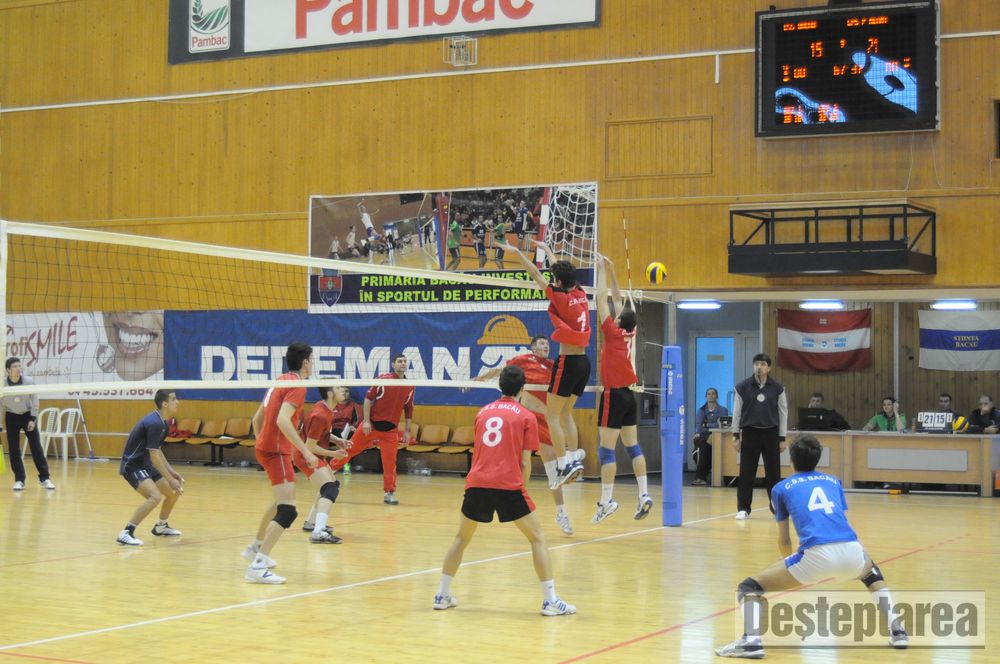 Voleibalistii bacauani si-au adjudecat actul patru la cea mai mare diferenta a meciului (25-13), pentru ca in tie-break sa se impuna cu 15-12 pe serviciul lui Cosmin Pântea.