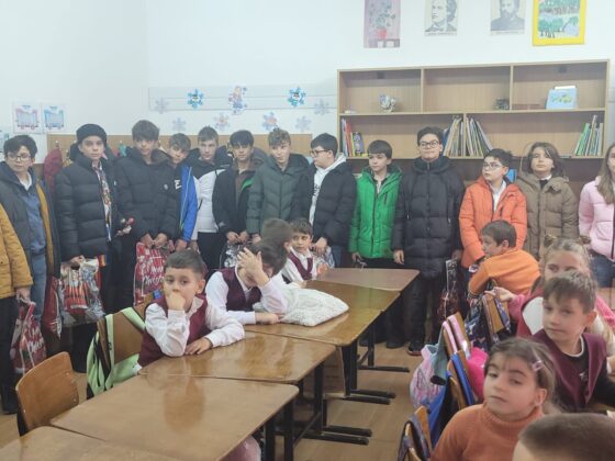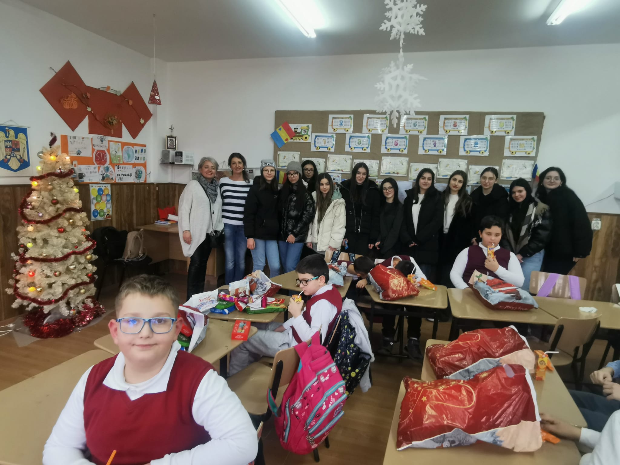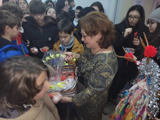 Și noi, elevii Colegiului Național „Ferdinand I” din Bacău, coordonați de către profesor diriginte Laura Gavriliță, la clasa a VI-a A, în colaborare cu doamnele profesoare Breahnă Oana și Meluță Beatrice, diriginte la clasele a VI-a B și a X-a A, am revenit în locuri cunoscute, la Școala din Hemeiuș, pentru a întâmpina copiii de aici cu daruri, colinde tradiționale acompaniate la acordeon și obiceiuri în jurul bradului etern, împodobit frumos cu steluțe aurii, argintii, beteală și globuri multicolore. Este vorba despre un proiect educațional inițiat acum câțiva ani de un grup de profesori ai Colegiului și ai altor școli din județ, la Hemeiuș fiind coordonat de profesor în învățământul primar, Gabriela Silișteanu.
