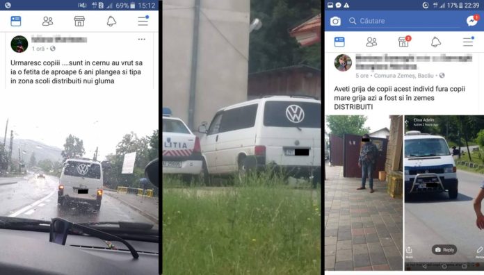 Reamintim că, săptămâna trecută, în zona localității Moinești s-a răspândit zvonul, amplificat și pe Facebook,că mai mulți copii au fost răpiți de ocupanții unui microbuz alb cu numere de Neamț. Mai mult, unii au spus că deja s-au găsit cadavrele unor copii cărora li se prelevasera organele interne.