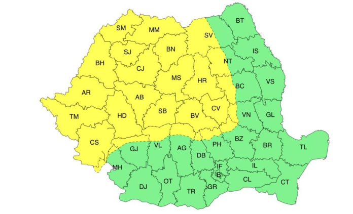 13 ianuarie, ora 10:00 – 14 ianuarie, ora 10:00: Cod Galben pentru Maramureș, cea mai mare parte a Transilvaniei, nordul Moldovei și zona de munte, unde vremea va rămâne deosebit de rece, cu maxime între -9 și -3 grade și minime între -13 și -6 grade.