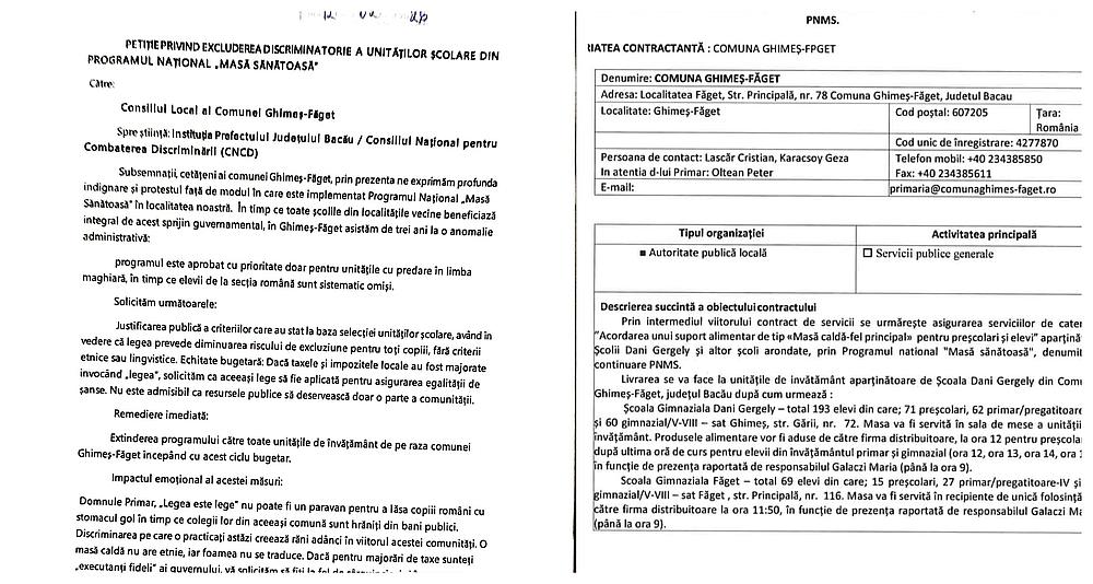„În timp ce toate școlile din localitățile vecine beneficiază integral de acest sprijin guvernamental, în Ghimeș-Făget asistăm de trei ani la o anomalie administrativă: programul este aprobat cu prioritate doar pentru unitățile cu predare în limba maghiară, în timp ce elevii de la secția română sunt sistematic omiși”, se arată în documentul semnat de localnici.