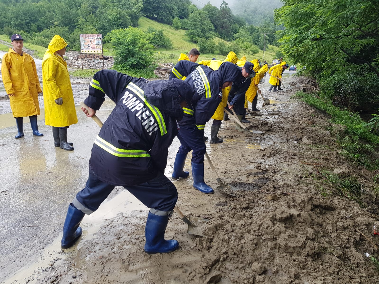 Astăzi, peste 90 de pompieri de la Inspectoratul pentru Situaţii de Urgenţă Bacău acţionează în localităţile măturate de viituri cu zece autospeciale de lucru, zece motopompe şi două staţii de potabilizare a apei.