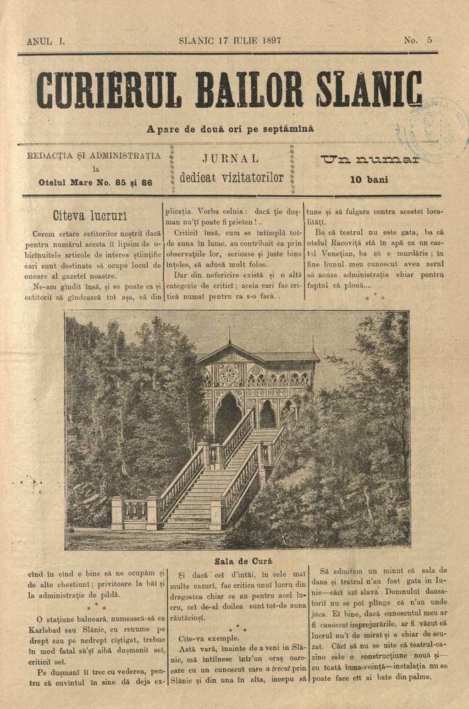 Continuăm serialul dedicat ziarului ,,Curierul Băilor Slănic” (din colecția Bibliotecii Centrale Universitare ,,Mihai Eminescu” din Iași – BCU), prima publicație care a apărut într-o stațiune din România, în fapt, un jurnal istoric al stațiunii Slănic-Moldova, prezentat online în premieră, care acoperă o perioadă istorică a stațiunii mai puțin cunoscută publicului larg.