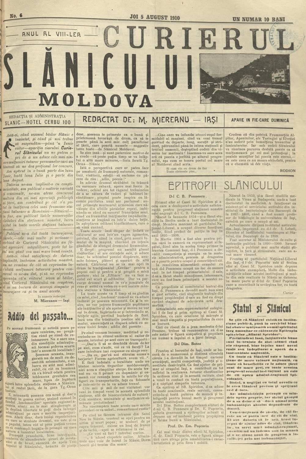 În acest episod: ,,Curierul Slănicului Moldovei”, Nr. 6, Anul VIII, Joi, 5 august 1910.