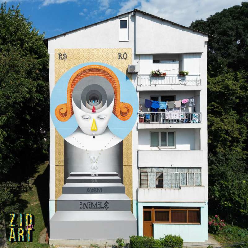 Festivalul „ZIDART – Street Art Festival” continuă să îmbogățească peisajul urban cu lucrări de artă puternice și pline de semnificație. Una dintre piesele de rezistență ale acestui eveniment este muralul „Sus să avem inimile” realizat de KERO ZEN, o operă care captivează privitorul atât vizual, cât și filozofic.